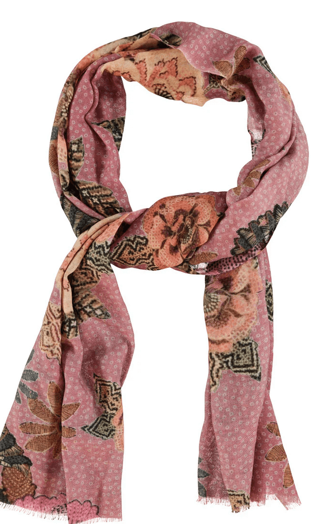 sisters department - scarf, pink with flowers & parrots