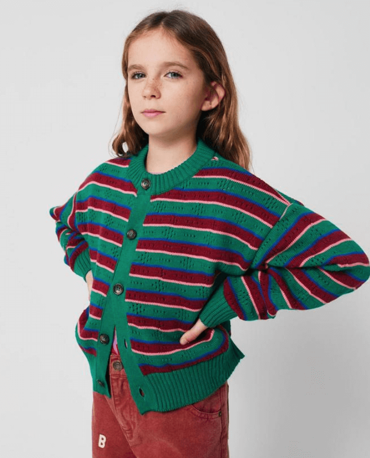 bobo choses - tic tac toe striped cardigan, multicolor