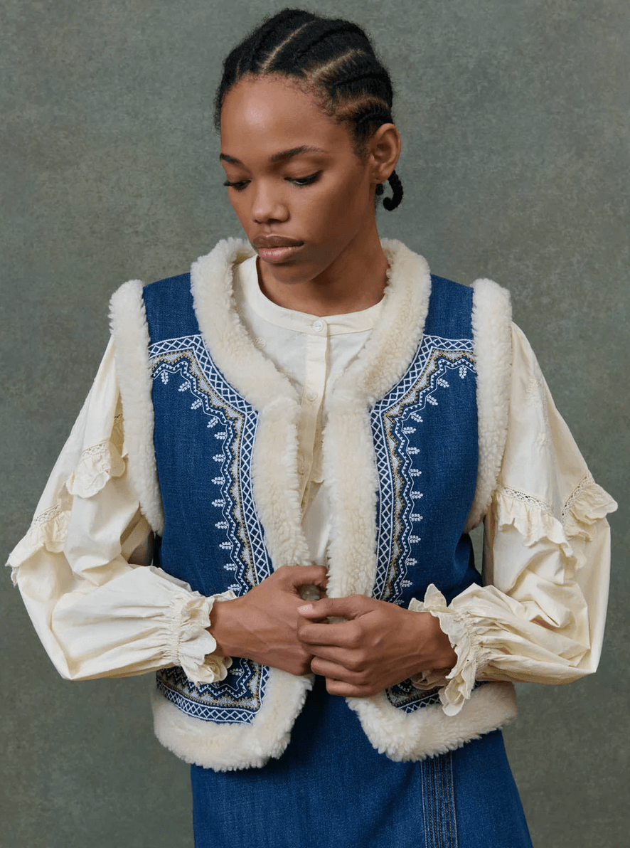 louise misha - reversible vest figara, stone blue