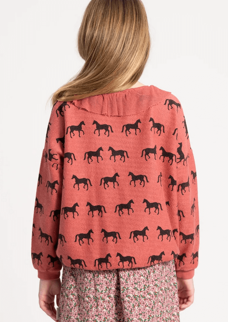 piupiuchick - sweatshirt, old pink with black horses
