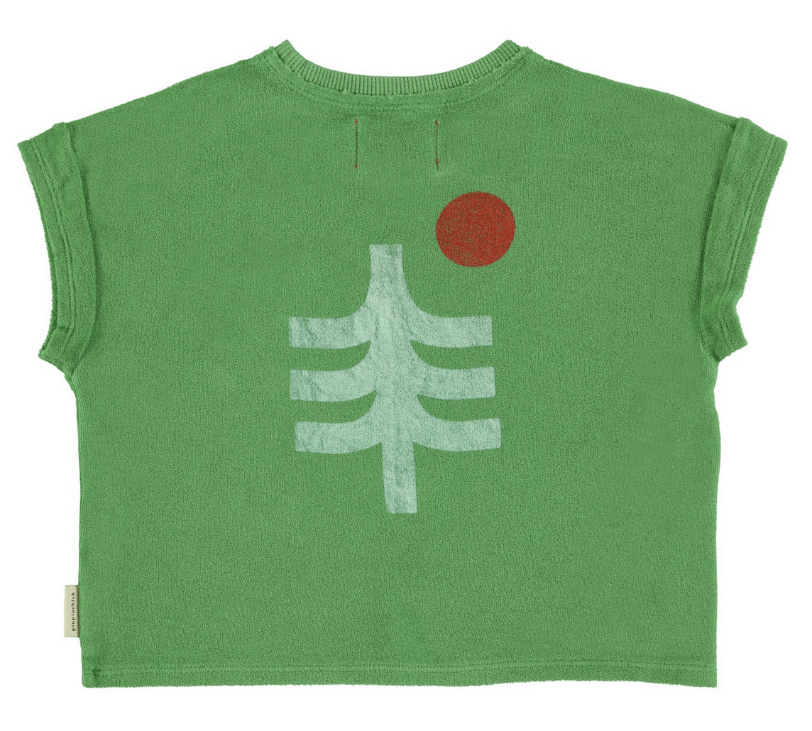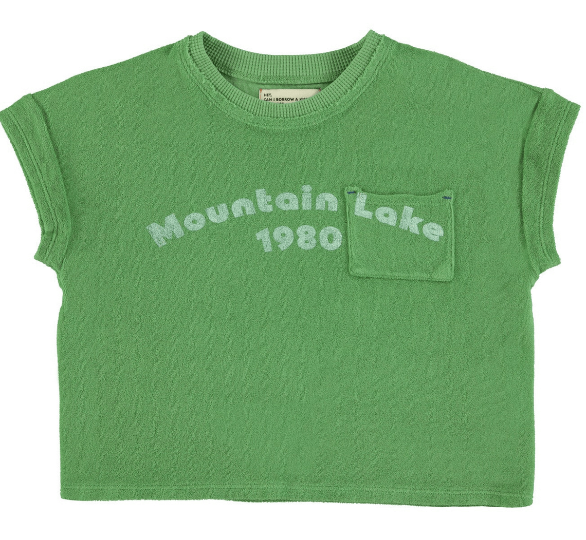 piupiuchick - shirt, green, mountain lake print, terry cotton