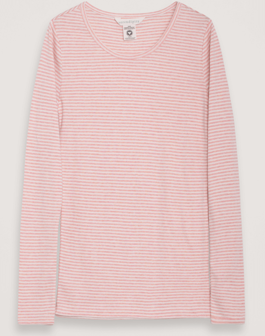 serendipity - slim tee stripe, coral/ecru