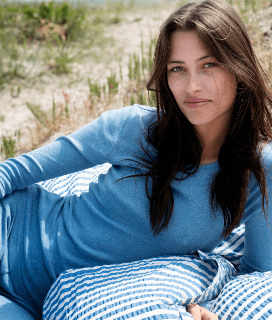 serendipity - slim tee stripe, azur/ecru
