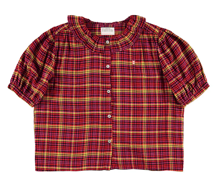sisters department - short sleeve blouse with collar, pink checkered